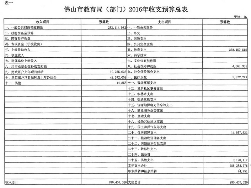 一、收支预算总表