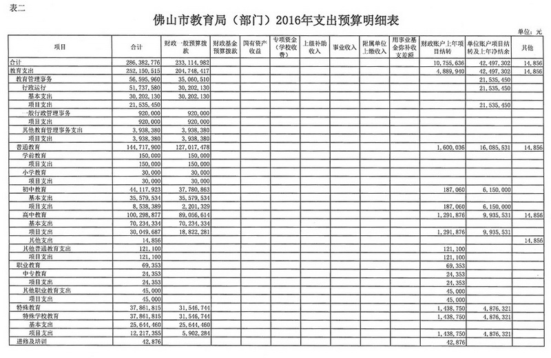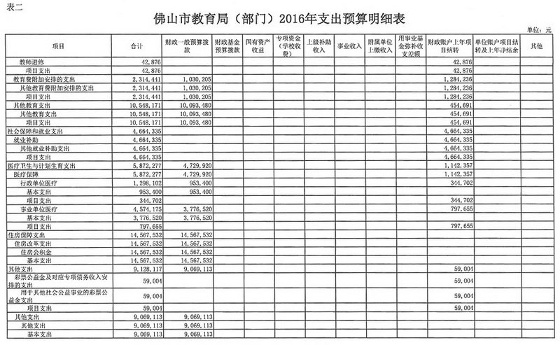 第三部分 2016年部门预算表
