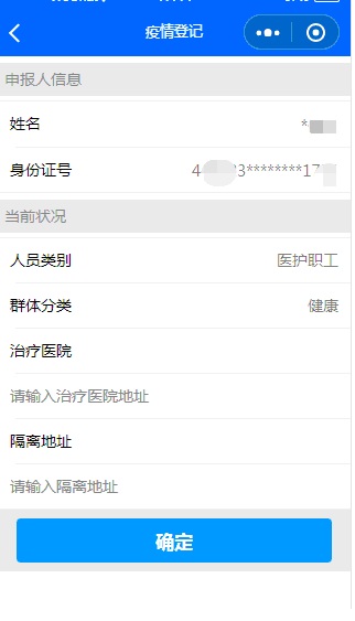(2)首次登录小程序会进入疫情相关信息收集页面。填写后进入主页面。