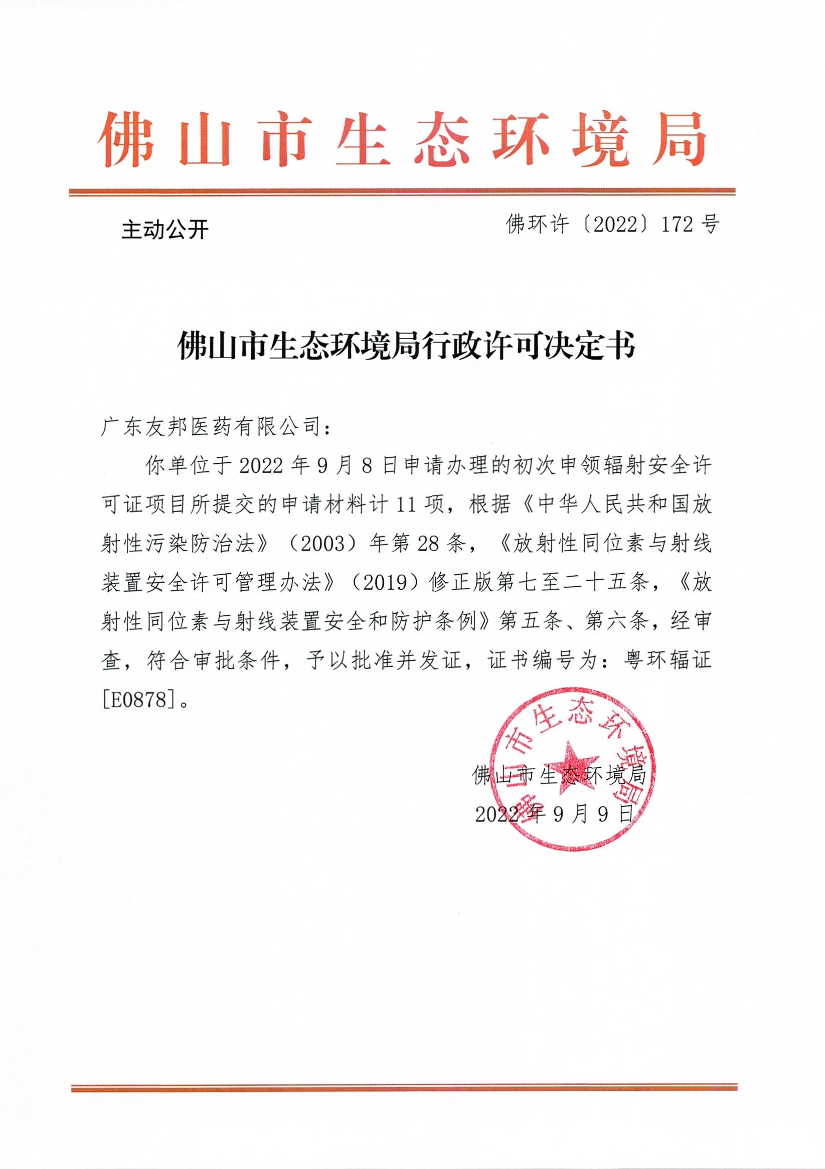 附件下载:佛环许〔2022〕172号广东友邦医药有限公司.jpg