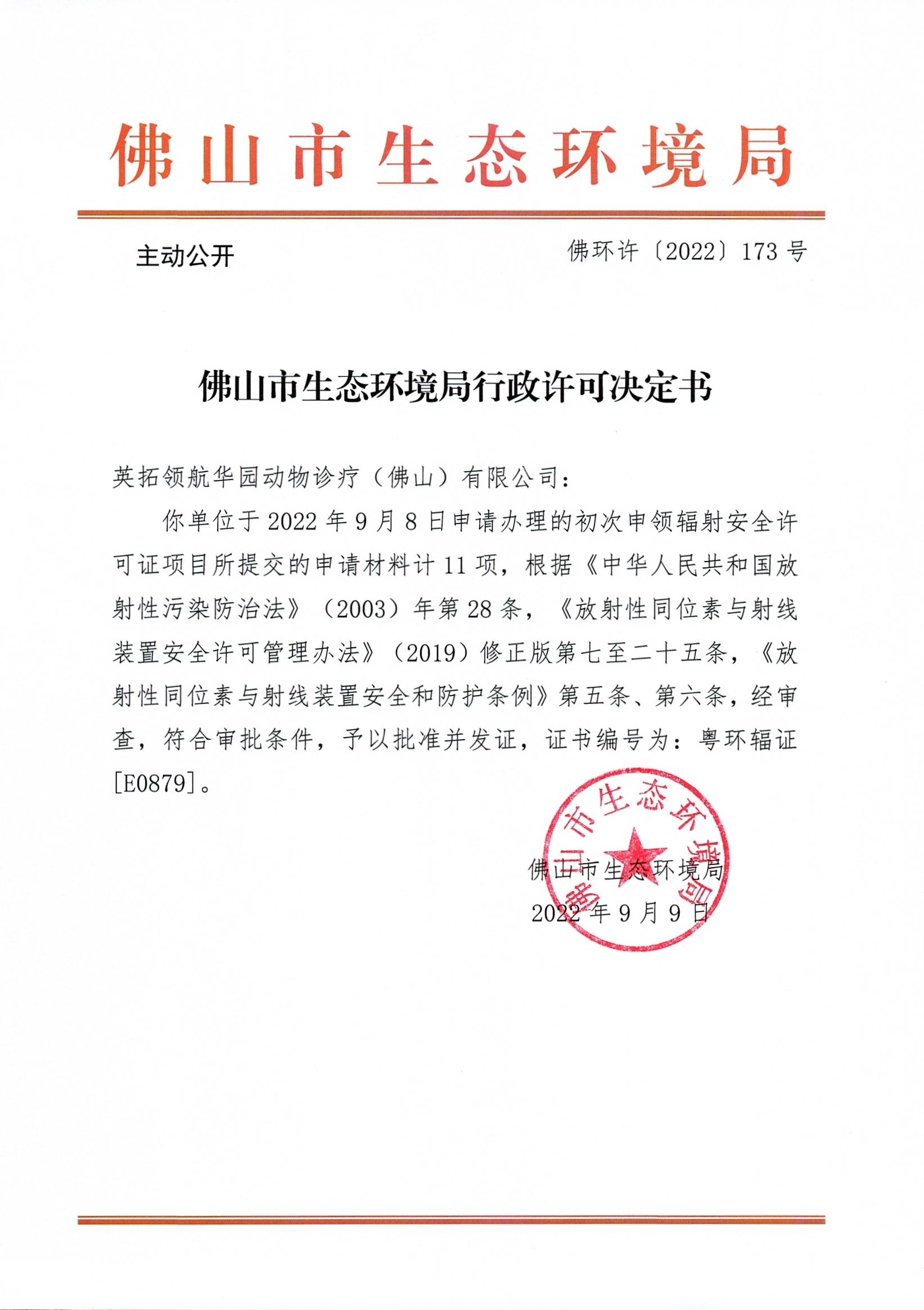 附件下载:佛环许〔2022〕173号英拓领航华园动物诊疗(佛山)有限公司.jpg
