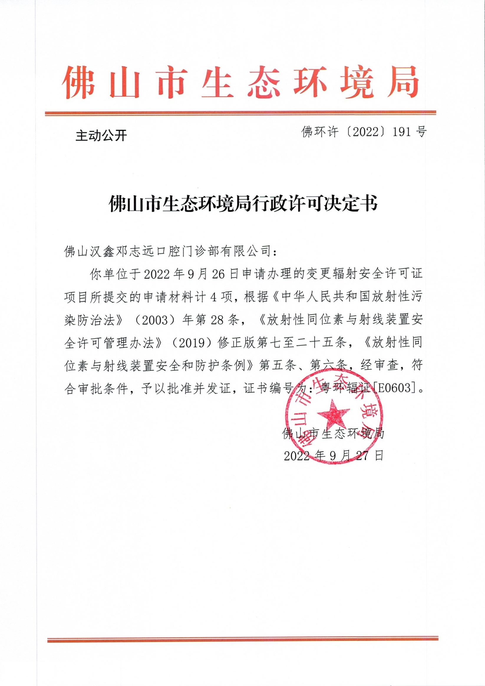 附件下载:佛环许〔2022〕191号佛山汉鑫邓志远口腔门诊部有限公司.jpg