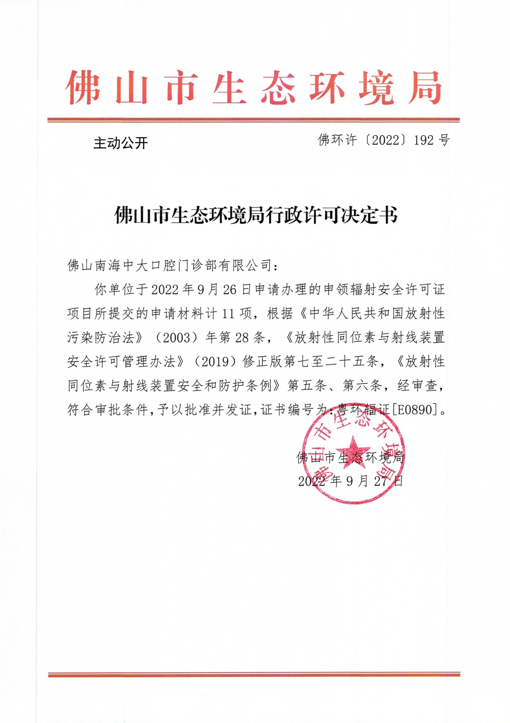 附件下载:佛环许〔2022〕192号佛山南海中大口腔门诊部有限公司.jpg