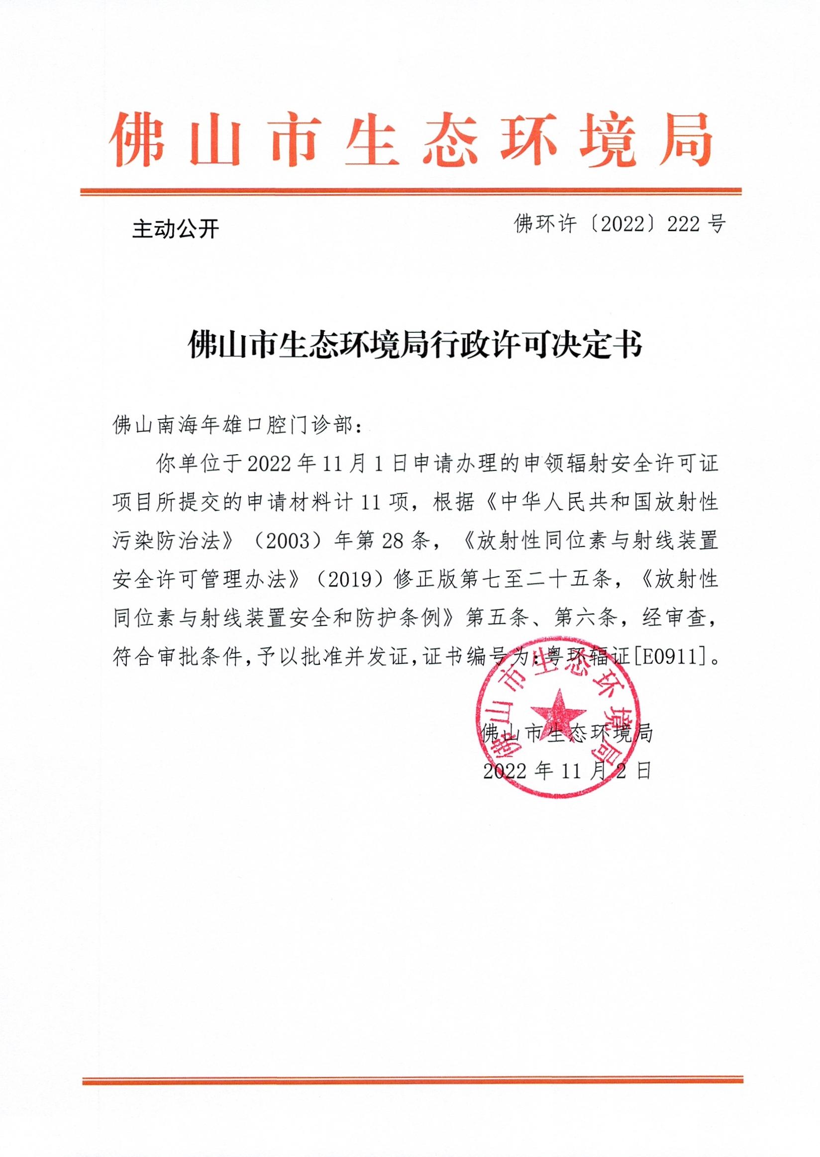 附件下载:佛环许〔2022〕222号佛山南海年雄口腔门诊部.jpg