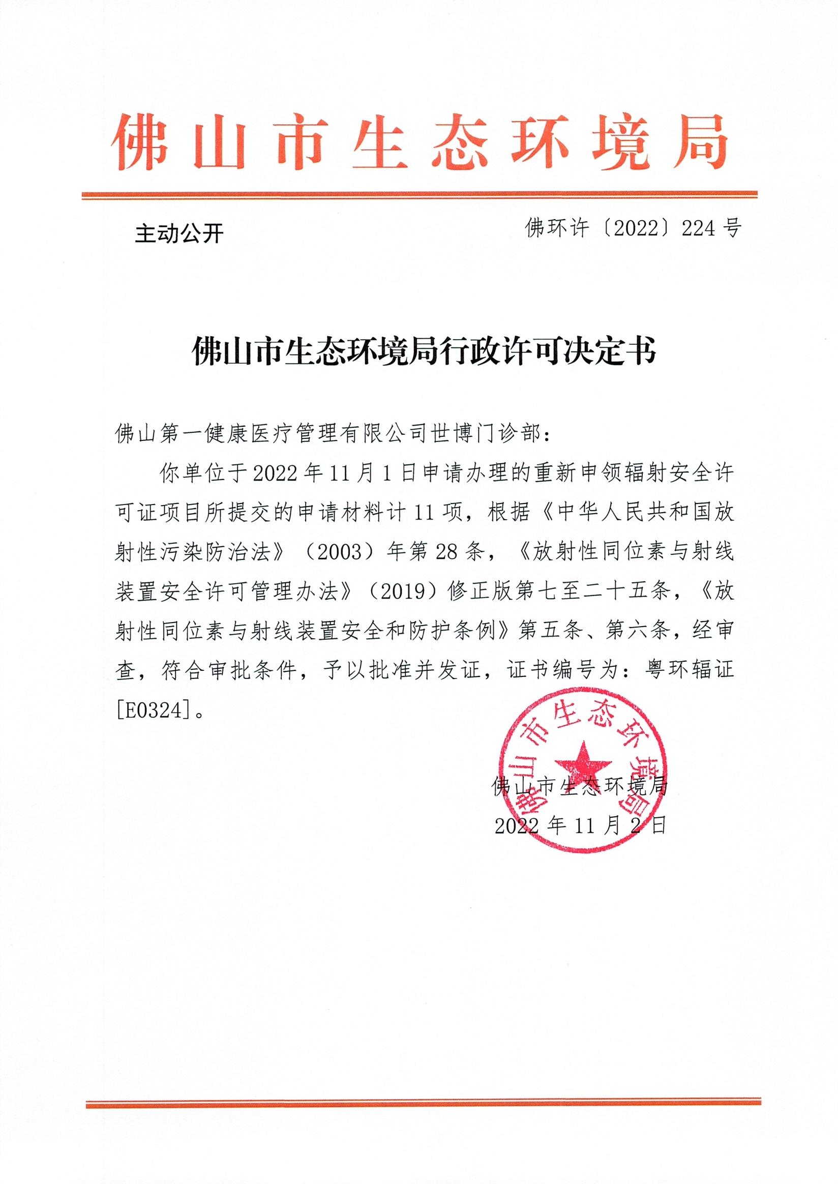 附件下载:佛环许〔2022〕224号佛山第一健康医疗管理有限公司世博门诊部.jpg