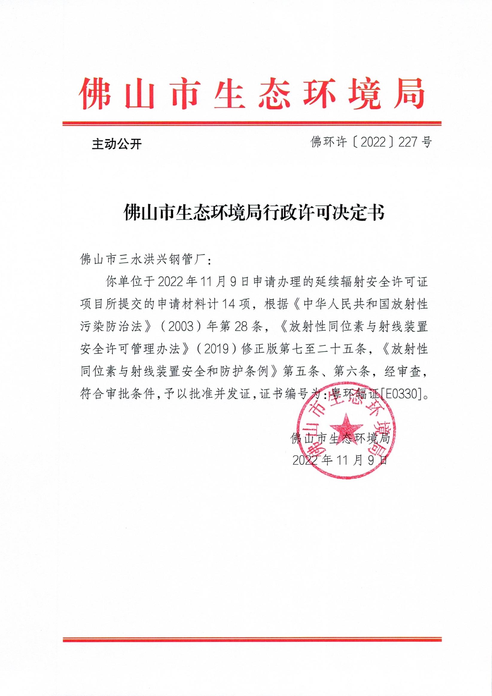 附件下载:佛环许〔2022〕227号365怎么查看投注记录_365bet娱乐注册_365bet不能注册三水洪兴钢管厂.jpg