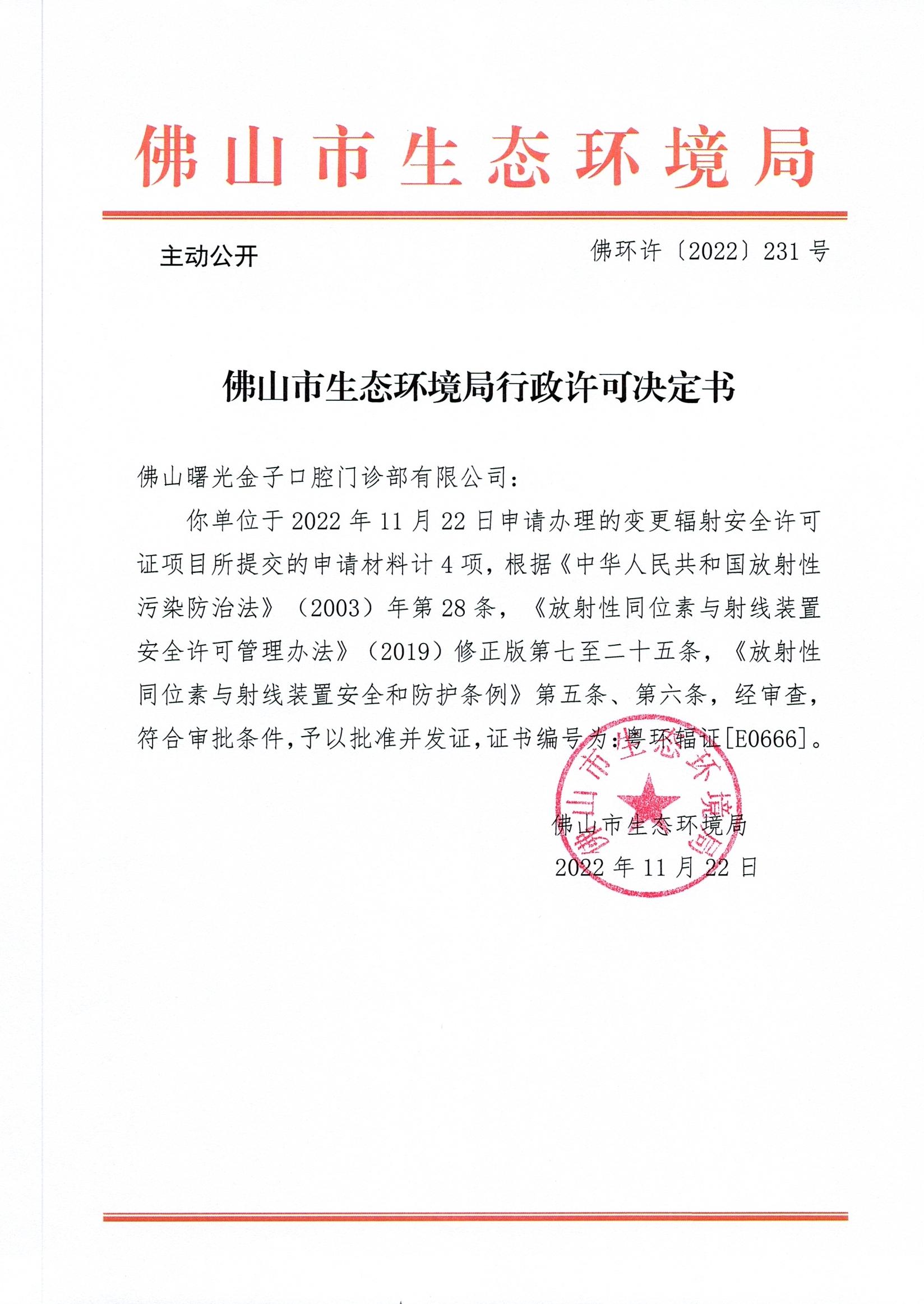 附件下载:佛环许〔2022〕231号佛山曙光金子口腔门诊部有限公司.jpg