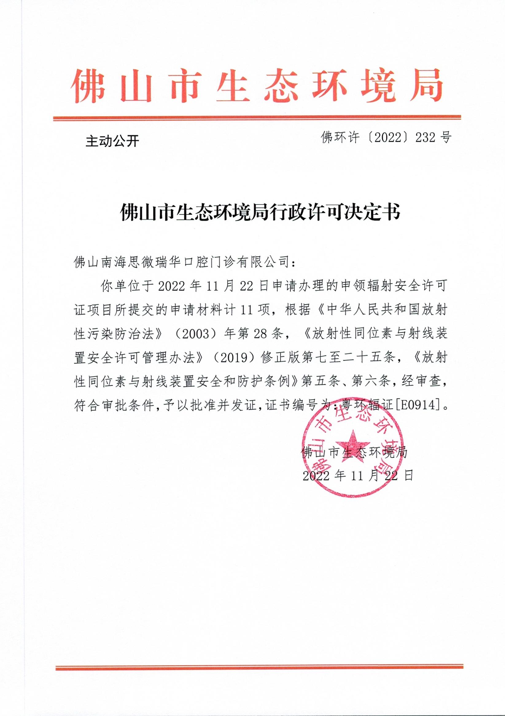附件下载:佛环许〔2022〕232号佛山南海思微瑞华口腔门诊有限公司.jpg