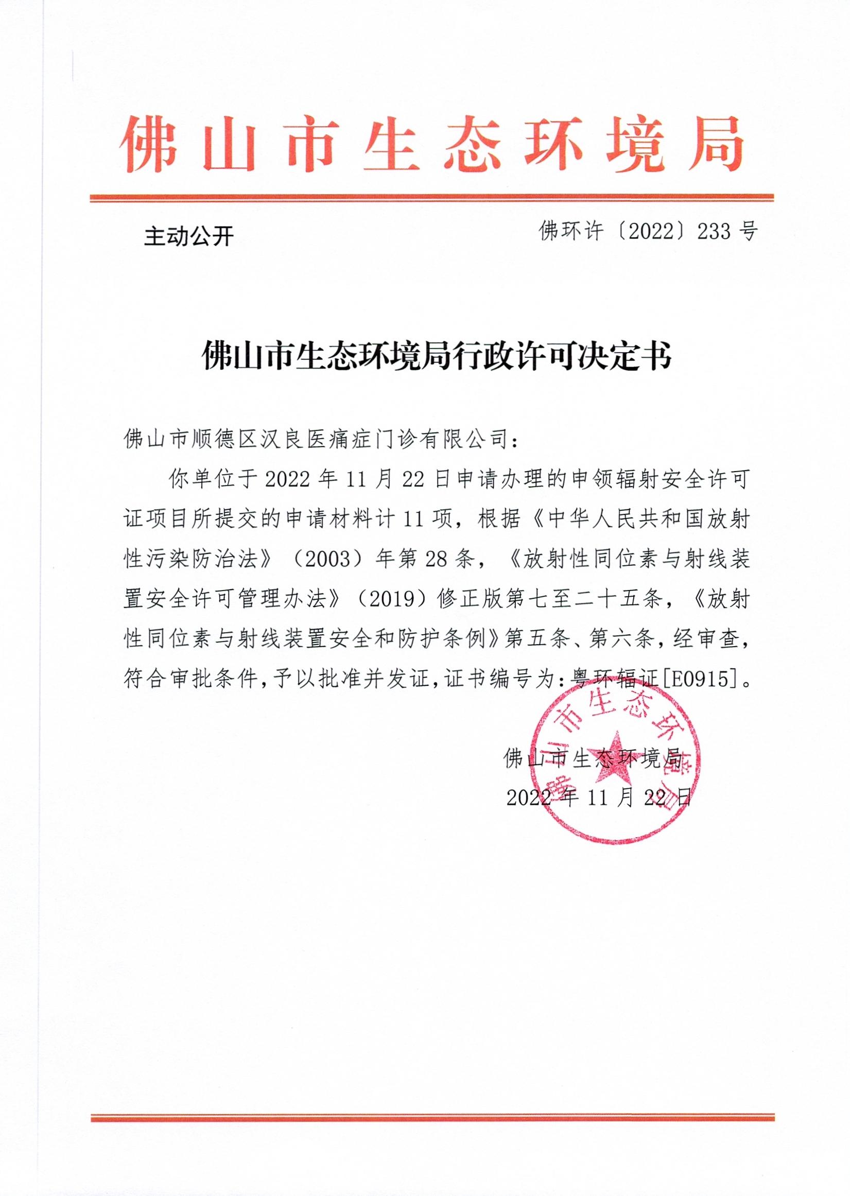 附件下载:佛环许〔2022〕233号365怎么查看投注记录_365bet娱乐注册_365bet不能注册顺德区汉良医痛症门诊有限公司.jpg