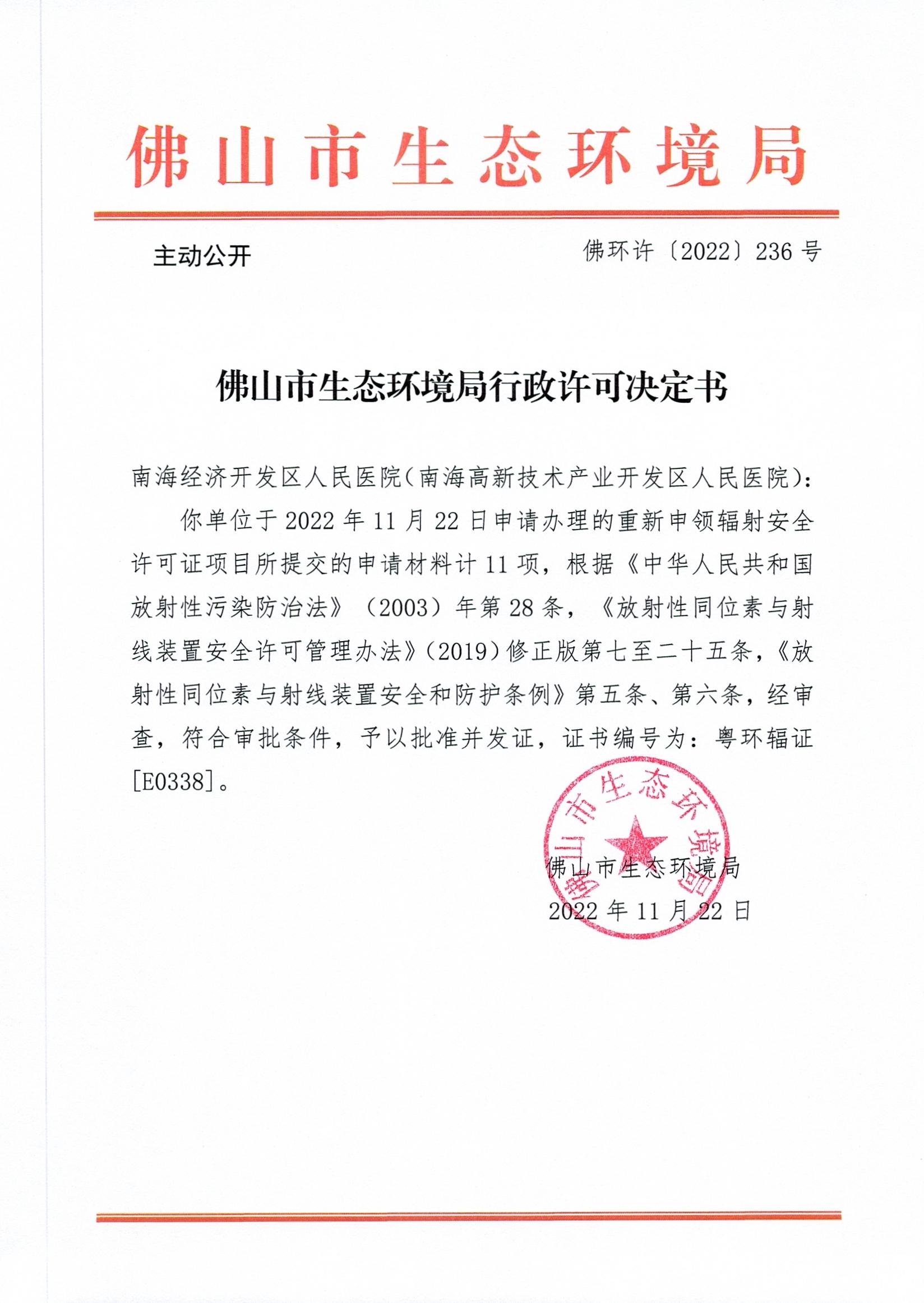 附件下载:佛环许〔2022〕236号南海经济开发区人民医院(南海高新技术产业开发区人民医院).jpg