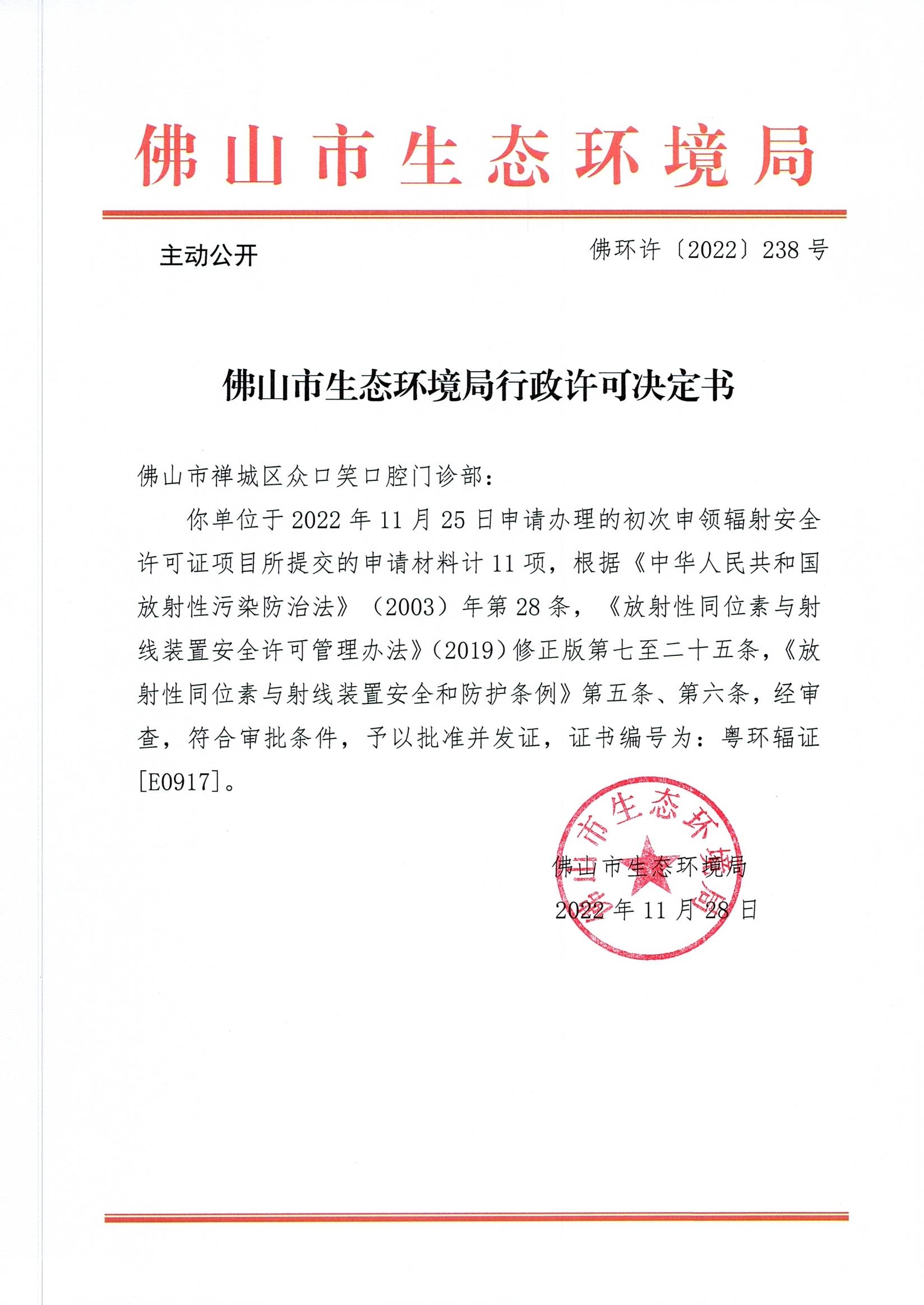 附件下载:佛环许〔2022〕238号365怎么查看投注记录_365bet娱乐注册_365bet不能注册禅城区众口笑口腔门诊部.jpg