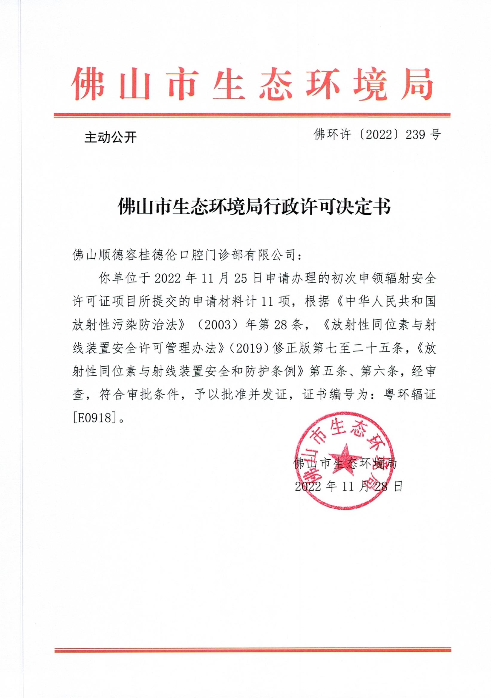 附件下载:佛环许〔2022〕239号佛山顺德容桂德伦口腔门诊部有限公司.jpg