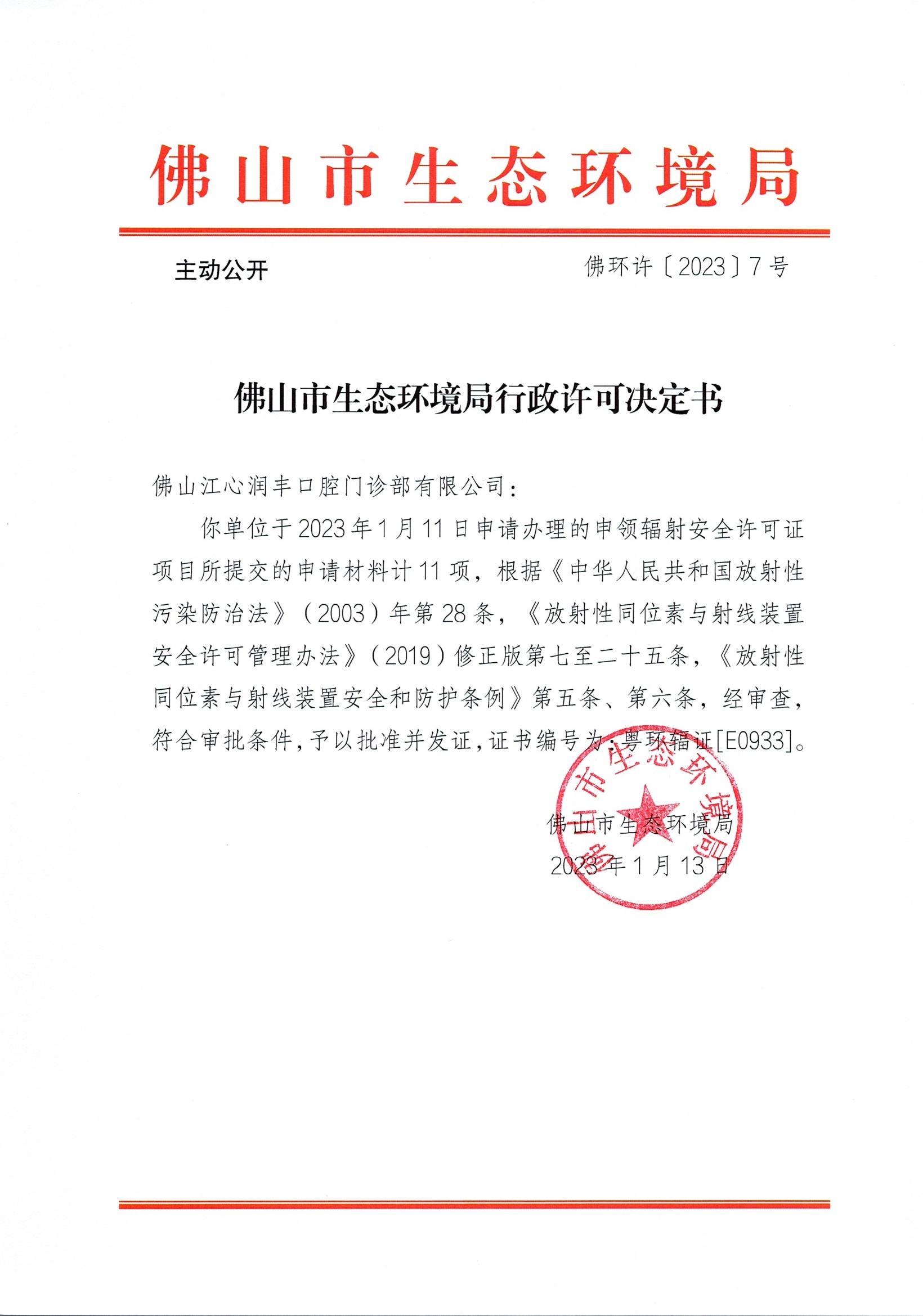 附件下载:佛环许〔2023〕7号佛山江心润丰口腔门诊部有限公司.jpg