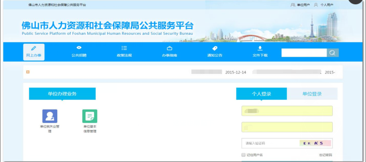 ②在【网上办事】的标签下的右侧能够看到单位登录和个人登录的登录窗口;