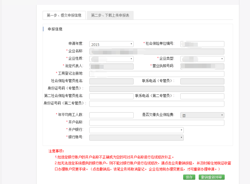 在申请页面可以录入申请年度、社会保险编号等信息,其中带红色星号为必填项,如下图所示:
