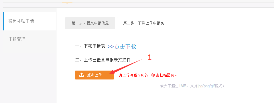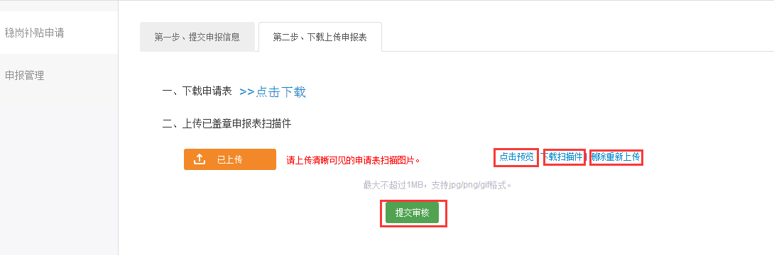 第三步:【下载上传申请表】并提交正式审核