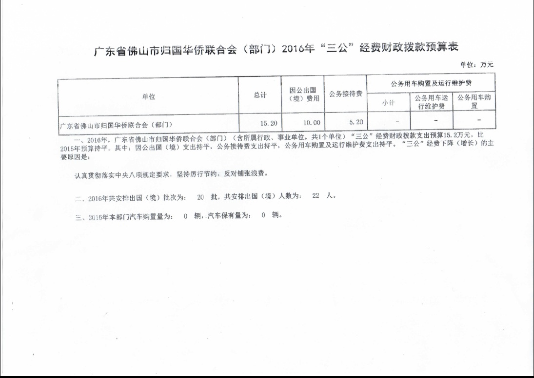 2016年”三公“经费财政拨款预算表
