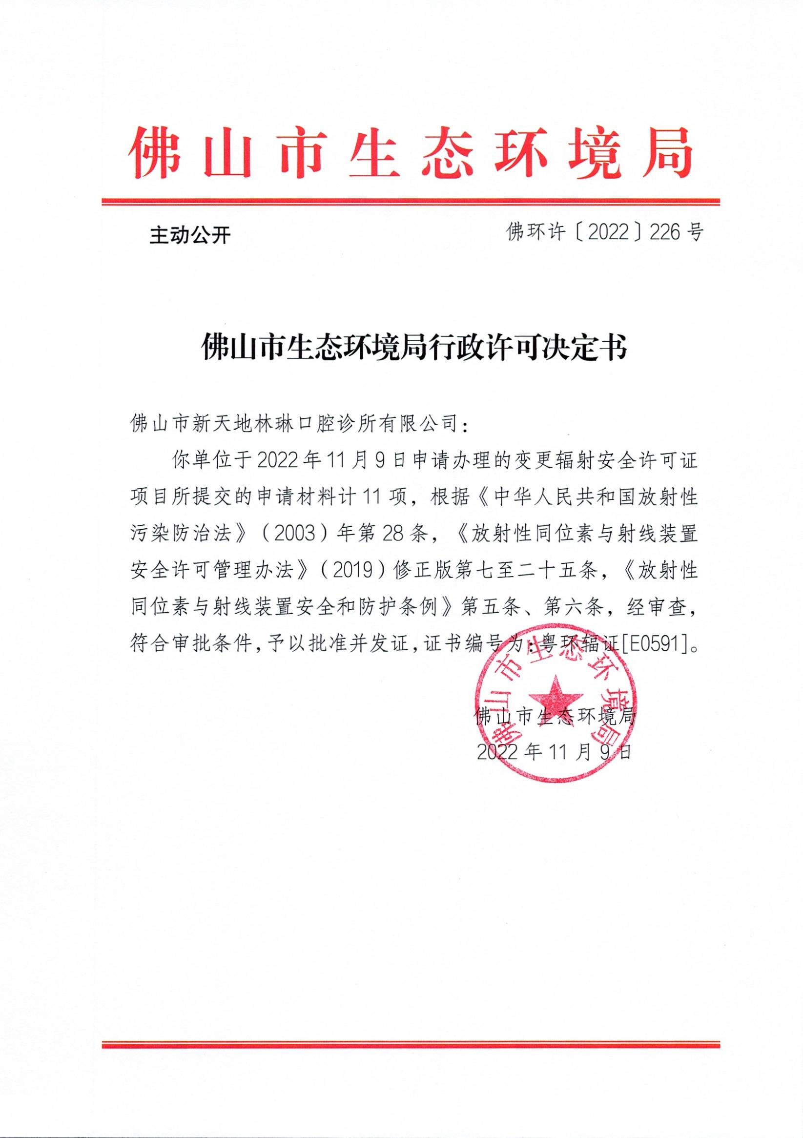 附件下载:佛环许〔2022〕226号365怎么查看投注记录_365bet娱乐注册_365bet不能注册新天地林琳口腔诊所有限公司.jpg