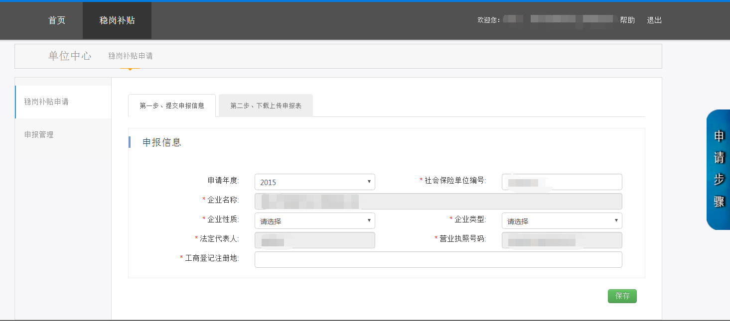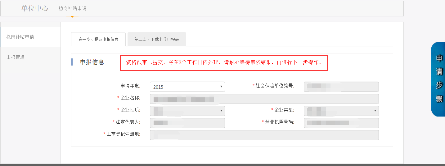 第三部分 企业稳岗补贴业务的申报管理界面