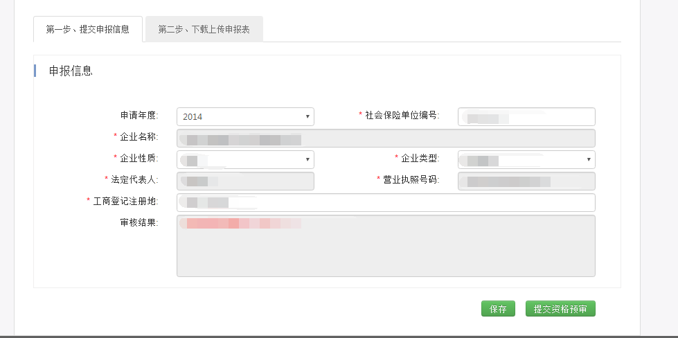 在申请页面可以录入申请年度、社会保险编号等信息,其中带红色星号为必填项,如下图所示: