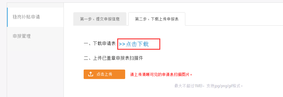第三步:【下载上传申请表】并提交正式审核